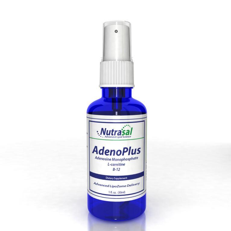 Adenosine Monophosphate appears to be beneficial for correcting low energy production due to mitochondrial dysfunction. Adeno Plus is a pharmaceutical grade and therapeutically dosed adenosine monophosphate (25mg), vitamin B-12 as methylcobalamin (1000mcg) and L-carnitine (100mg), administered in a sublingual liposomal spray with bioperin spray to significantly increases absorption of these vital energy producing nutrients.