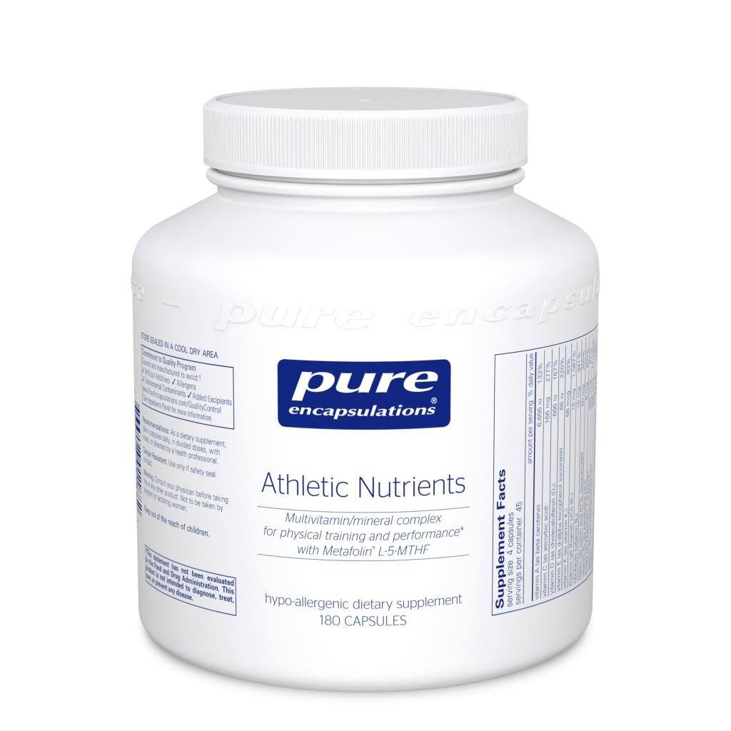 Athletic Nutrients is a multivitamin/mineral formula designed to enhance athletic training and performance. Athletic Nutrients from Pure Encapsulations promotes energy, stamina and helps lessen muscle fatigue following physical exertion.