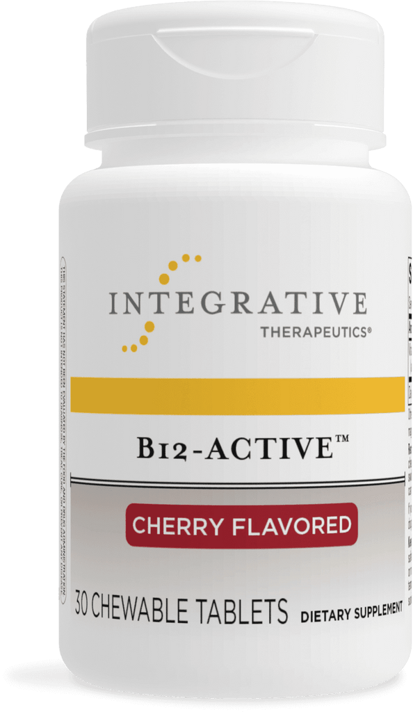 B12-Active™ provides methylcobalamin in a fast-absorbing chewable tablet. Methylcobalamin is the active form of vitamin B12, which does not require conversion in the body. Several investigations have shown that vitamin B12 levels decline with age. B12-Active provides 1000 mcg of vitamin B12 (as methylcobalamin) per chewable tablet to support nerve function.