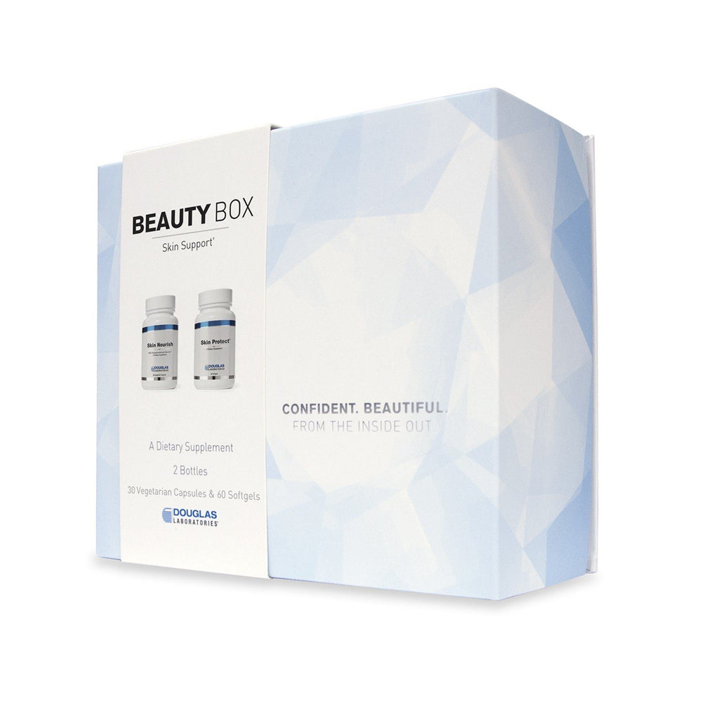 The Beauty Box Skin Support contains two complementary formulas to support skin health. The Skin Nourish formula includes a specialized nutrient blend of clinically studied ingredients containing polyphenolic compounds from grape seed, superoxide dismutase concentrate from melon, vitamin C and zinc. Together, these nutrients work within the body to provide skin radiance, hydration, and a nourished appearance. Skin Protect delivers a clinically studied combination of the antioxidants carnosic acid, lycopene, phytoene, and phytofluene to defend the skin from the effects of UV light exposure and environmental stresses.