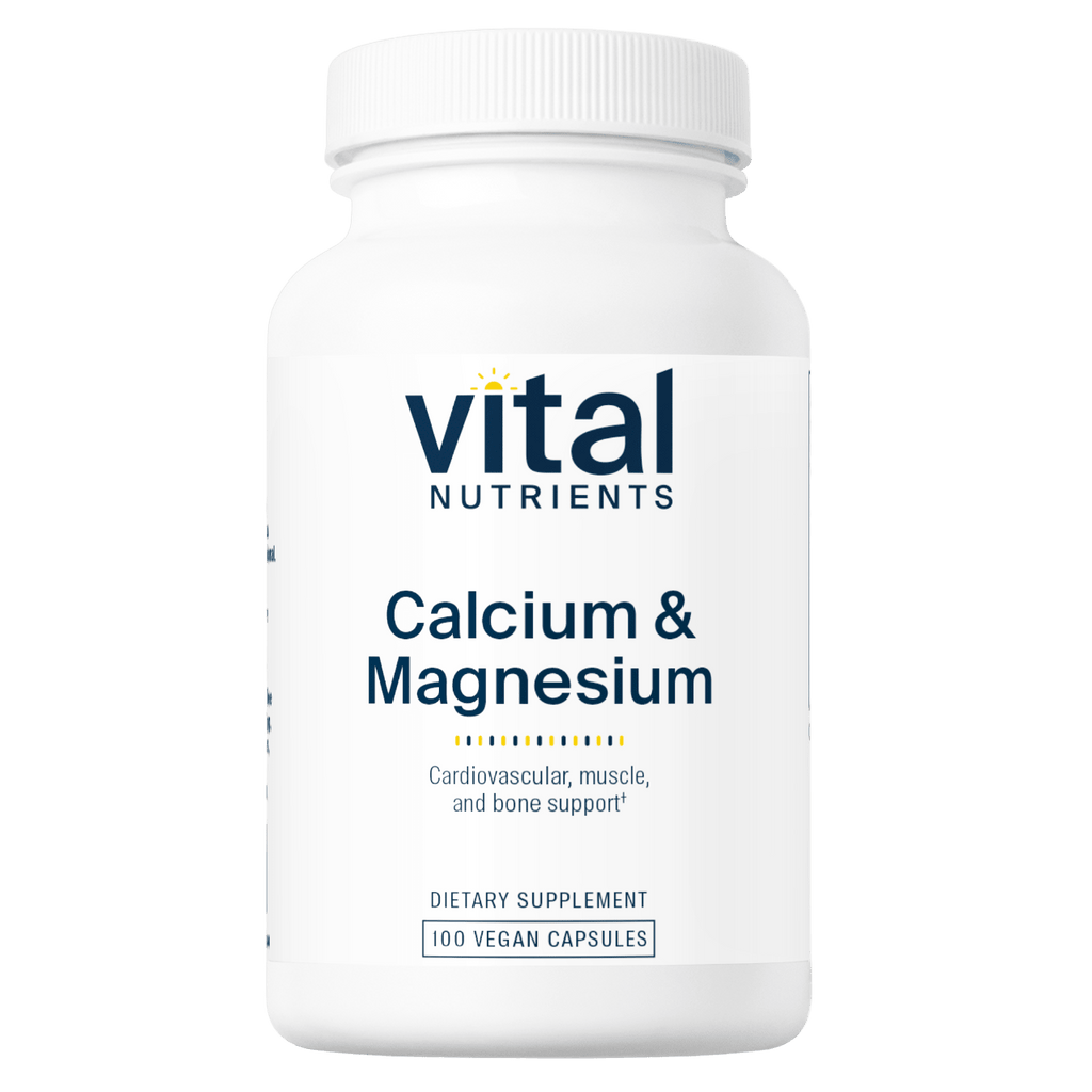 Calcium & Magnesium work together to support a healthy cardiovascular system. Calcium is necessary for healthy teeth and bones, and Magnesium supports muscle and nerve function and helps the body to metabolize and absorb calcium. Calcium also maintains healthy heart function and normal colonic cell growth. It also helps to maintain normal mood during the menstrual cycle. Calcium and Magnesium have been shown to support normal mood and demeanor during PMS. Regular exercise and a healthy diet with enough Calcium helps teen and young adult women maintain good bone health and may reduce their risk of osteoporosis later in life. For people with a family history of osteoporosis, menopausal women and elderly men and women, adequate Calcium intake is linked to reduced risk of osteoporosis through the mechanism of slowing the rate of bone loss. Adequate Calcium intake is important, but daily intakes above 2000 mg are not likely to provide additional benefit.