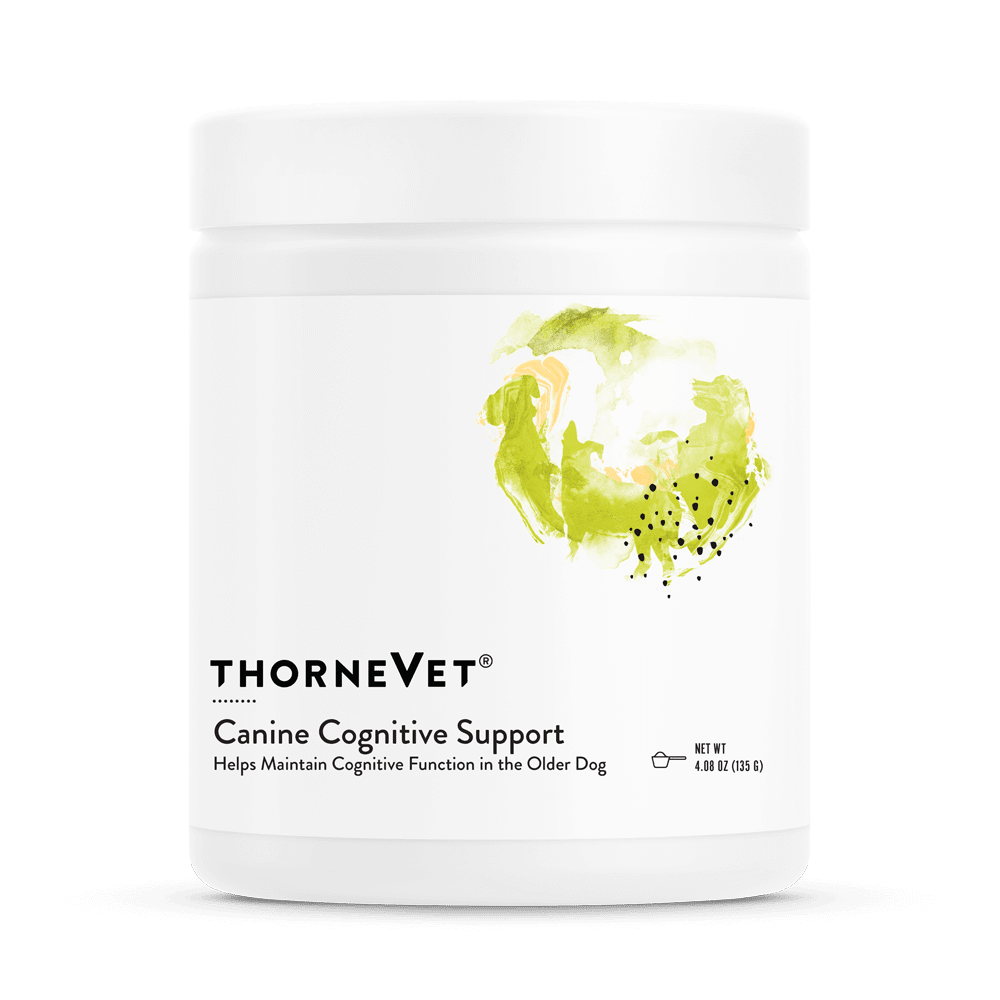 ThorneVet’s Canine Cognitive Support formula combines 13 ingredients – potent antioxidants, phospholipids, botanicals, and tissue-ready B vitamins – to synergistically support the nervous system and protect against neurodegenerative disorders that can adversely impact our canine friends.