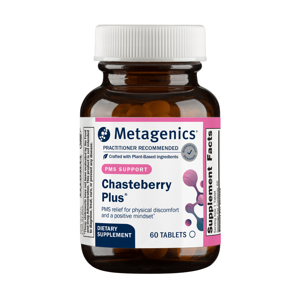 Chasteberry Plus® is clinically proven to naturally relieve the 10 most common symptoms of PMS, including headaches, mood swings, cramps, irritability, bloating, and uneasiness related to monthly menstrual cycles. A unique herbal blend incorporating chasteberry, black cohosh, and ashwagandha.