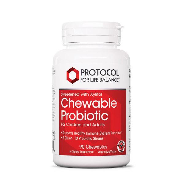 Protocol For Life Balance® Chewable Probiotic is a great-tasting, chewable probiotic supplement sweetened with xylitol. The bacterial strains in this product have been scientifically tested and chosen for their ability to support healthy immune system and GI functions. These bacterial strains are particularly hardy and have been shown to adhere to the intestinal lining, thereby helping to maintain intestinal integrity. This product can be used by both adults and children.