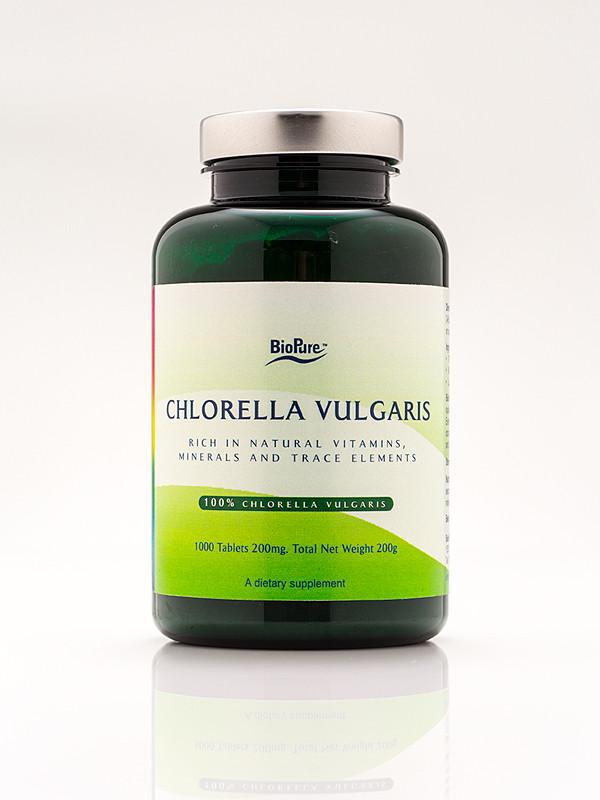 Chlorella is a complete food, rich in protein, vitamins and minerals. It has twice the protein found in an equivalent weight of beef and is considered a complete protein having all 8 essential amino acids. 100 grams of Chlorella contains over 51,000 IU of Vitamin A. It also has Vitamins B1, B6, B12, C, E, pantothenic acid, folic acid, biotin, niacin and riboflavin. Chlorella is also rich in minerals, especially iron and zinc.