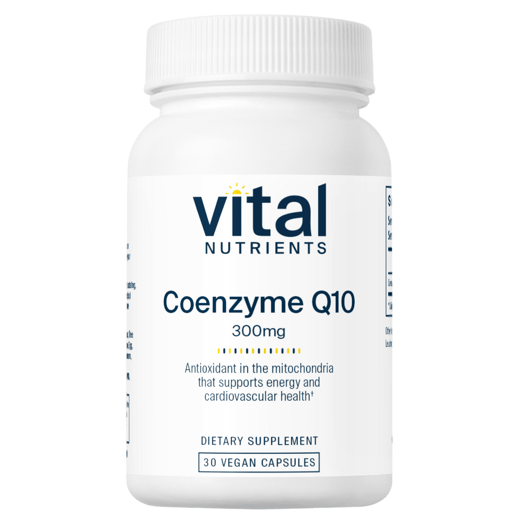 CoEnzyme Q10 is an antioxidant and free radical scavenger found in the mitochondria of every cell of the body. CoQ10 increases energy at cellular levels, and the cells and tissues with the greatest energy requirements have the highest concentrations of CoQ10. Levels of CoQ10 levels may decline with age, or be depleted by certain medications. Supplemental CoQ10 is a fat-soluble, vitamin-like compound which nutritionally supports the cardiovascular health in several ways. It acts as an antioxidant against peroxidation of lipids such as LDL cholesterol, helps maintain and support healthy functioning of the heart muscle and arteries, and promotes additional tolerance for exercise. CoQ10 helps maintain blood sugar levels that are already within the normal range, promotes gingival (gum) health and normal sperm motility, and may help support healthy aging.