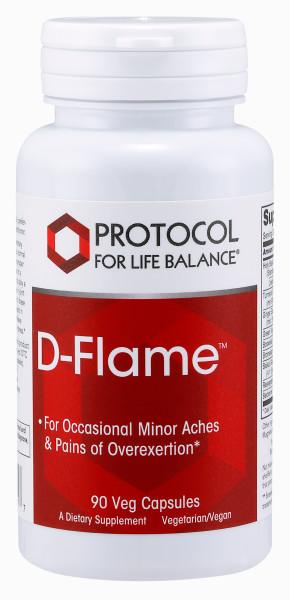 D-Flame™ is a blend of complementary herbs that may help to support a healthy response to normal physiological stress through its ability to support the proper activity of cellular signaling molecules. Maintenance of a normal balance of these mediators has been shown to play a key role in healthy cardiovascular function, as well as in joint health. By helping to support a balanced response to these signals, the herbal components of D-Flame™ may assist in the maintenance of healthy joints and may help to relieve occasional minor pain resulting from over-exertion or stress.