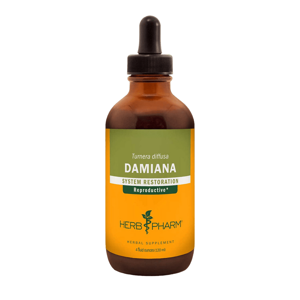 Herb Pharm prepares their Damiana Extract from the flowering aerial parts of certified organically grown or responsibly wildcrafted Turnera diffusa shrubs.