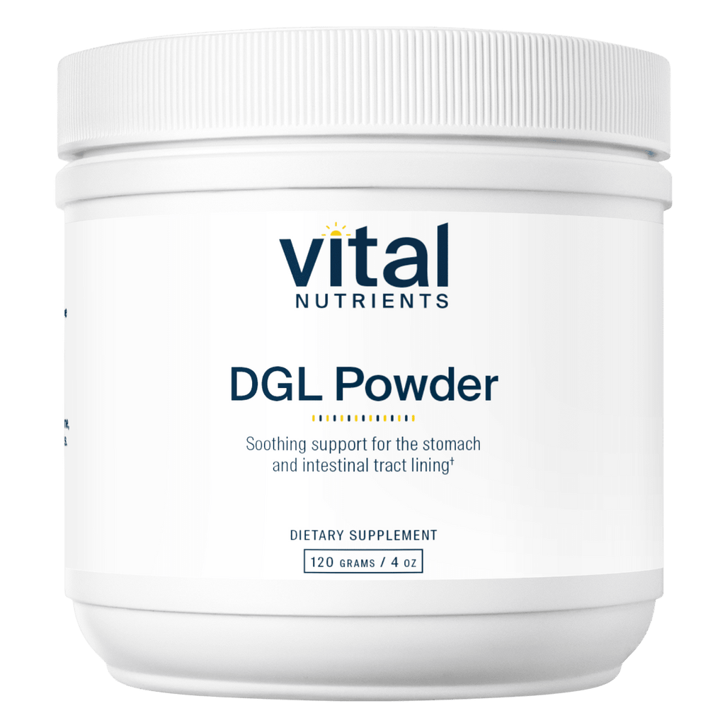 DGL Powder (deglycyrrhized licorice root) is a safe and effective licorice extract, specially processed to have the glycyrrhizin component removed to below .6% to avoid potential side effects. It soothes, supports and protects the lining of the stomach and gastrointestinal tract. DGL significantly stimulates the proliferation of mucus secreting goblet cells. It also aids in maintaining the integrity of healthy epithelial tissue and helps to maintain normal cell function. This popular product offers an easy to dose, soothing powder formula to support gastrointestinal health.