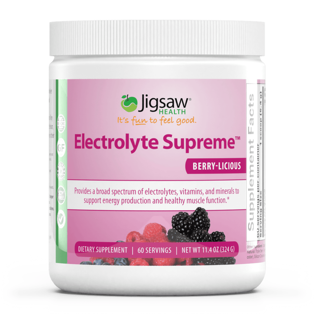 Jigsaw Electrolyte Supreme contains a broad spectrum of electrolytes, minerals and vitamins in each serving. Replenish and rehydrate your body by adding one scoop of Jigsaw Electrolyte Supreme to your water for a refreshing and nourishing energy-boosting beverage.