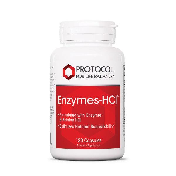 Protocol For Life Balance® Enzymes-HCl™ is a comprehensive enzyme formula designed to support both gastric and intestinal digestive functions. The inclusion of Betaine HCl helps to start digestion by the stomach and prepares the correct pH to stimulate intestinal function. A full spectrum of proteases further assists the intestine in the complete breakdown of food for enhanced absorption.