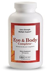 Eye & Body Complete is an extra-strength premium broad-spectrum dietary supplement of vitamins, minerals and antioxidant phytochemicals designed to support eye and body health and mitochondrial energy. When you take Eye & Body Complete you do not need additional multiple vitamin supplements.
