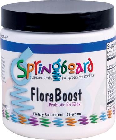 FloraBoost is a probiotic formula for children, designed to deliver live bacteria that promote healthy gut microflora, protect intestinal integrity and boost immune function. The formula contains three strains of Lactobacilli and three strains of Bifidobacteria, as well as Streptococcus thermophilus and Saccharomyces boulardii, an extensively researched microorganism shown to help restore microflora balance by enhancing commensal organism function. The eight strains in FloraBoost have been strategically selected based on research supporting their survivability and adherence to the intestinal tract. FloraBoost comes in a powder form for easy administration to children.