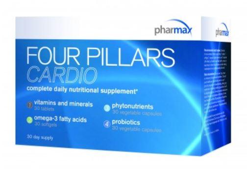 Four Pillars Cardio promotes optimal nutritional status with a unique combination of vitamins and minerals, omega-3 fatty acids, herbs, and probiotics.* This blend of nutrients and standardized herbal extracts was specifically formulated to support cardiovascular health.* Coenzyme Q10 helps produce energy for cellular functions and muscle contractions, and promotes antioxidant defense in conjunction with Cardiophenol™ grape and organic cranberry extract.* Hawthorn supports cardiovascular function, while garlic and the omega-3 fatty acids DHA and EPA promote healthy lipid metabolism and blood flow.* Four Pillars Cardio also contains over 20 vitamins and minerals to support overall well-being, plus probiotics to help support gastrointestinal health.*