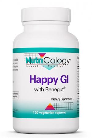 Happy GI combines the proven Perilla extract Benegut with modified citrus pectin and traditional botanicals, including bromelain, papaya, cayenne, ginger, fennel seed, oregano, and chlorophyll. It is designed to help resolve temporary gastrointestinal discomfort, and encourage healthy bowel motion and elimination.