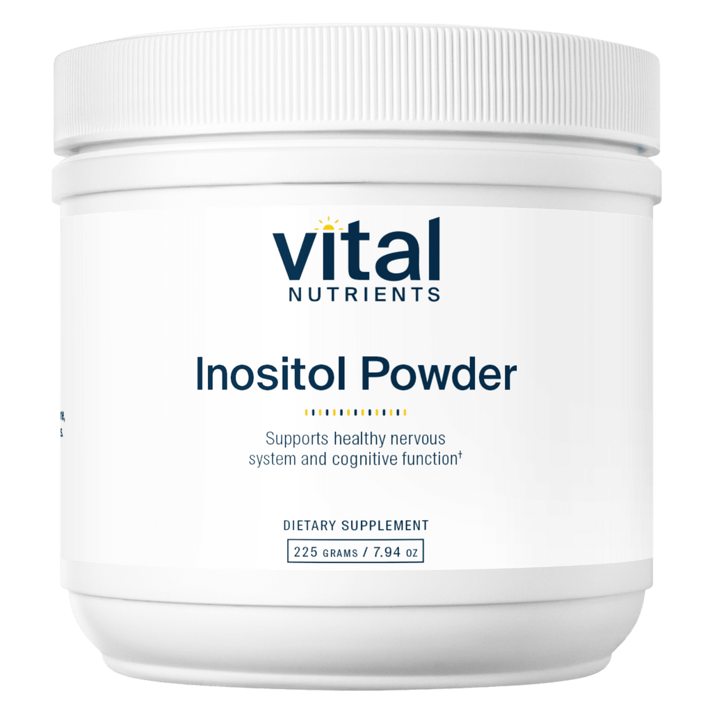 Inositol is a compound found in a wide range of tissues, with higher concentrations in the heart and brain. Inositol Powder may be used to help support and maintain positive mood. It promotes healthy neurotransmitter metabolism and helps reduce daily stress and occasional anxiety. Inositol Powder may be beneficial in the transport of cholesterol out of the liver to help maintain already normal-range cholesterol levels. It may also help maintain healthy blood sugar levels and ovarian function. Vital Nutrients’ inositol supplement is offered in a powder form which readily dissolves in water and has a slightly sweet taste.