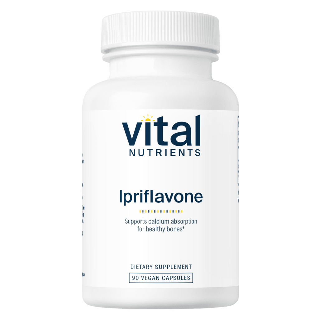 Ipriflavone is a derivative of the soy isoflavone daidzein, used to support bone health. Ipriflavone promotes the secretion of calcitonin from the thyroid, which helps maintain a normal balance of osteoclastic (bone resorption) activity in the bones as they undergo continuous remodeling. Ipriflavone also helps support calcium absorption in the intestines and promote bone mineralization.