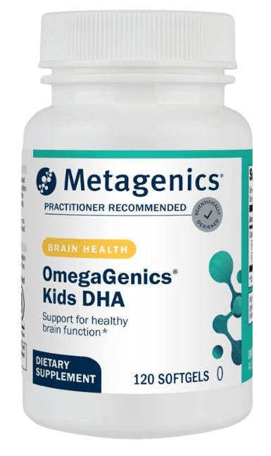OmegaGenics® Kids DHA—formerly MetaKids® DHA—features a concentrated, purified source of omega-3 fatty acids to support healthy brain function. Each softgel provides a total of 10 mg EPA and 50 mg DHA. This naturally fruit-flavored formula is tested for purity and quality and stabilized with antioxidants to maintain freshness.