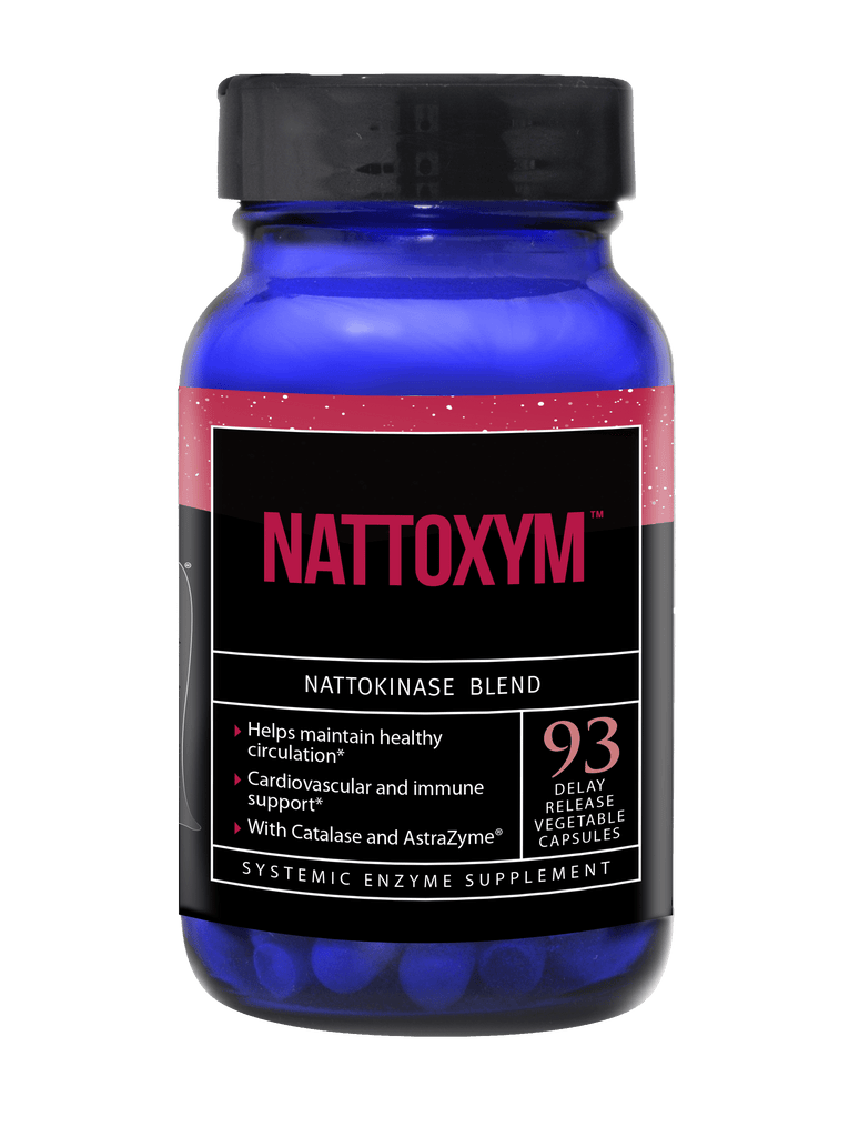 NATTOXYM™ is a blend of the systemic enzymes Nattokinase and Catalase in a proprietary mineral base which is designed to super-charge the effects of the enzyme actions. Nattoxym's primary function is to offer targeted circulatory support.