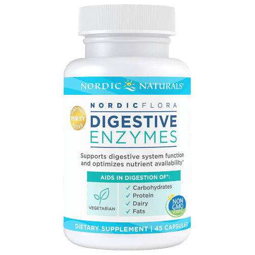 Featuring a select group of high-quality enzymes, Nordic Naturals Digestive Enzymes supports normal digestive processes and optimizes nutrient availability by helping the body break down carbohydrates, proteins, and fats into smaller, digestible molecules.* In contrast to many other enzyme supplements, this product is certified vegetarian, and derived exclusively from microbial and plant sources. An added benefit of these microbe-sourced digestive enzymes is that they work across a broad pH range, including both the acidic stomach and the more alkaline intestine.* Formulated with papaya enzyme, vegetarian pancreatin analog, and lactase, these research-backed enzymes are designed to support normal human digestion without adding unnecessary enzymatic factors that could potentially alter the digestive process.*