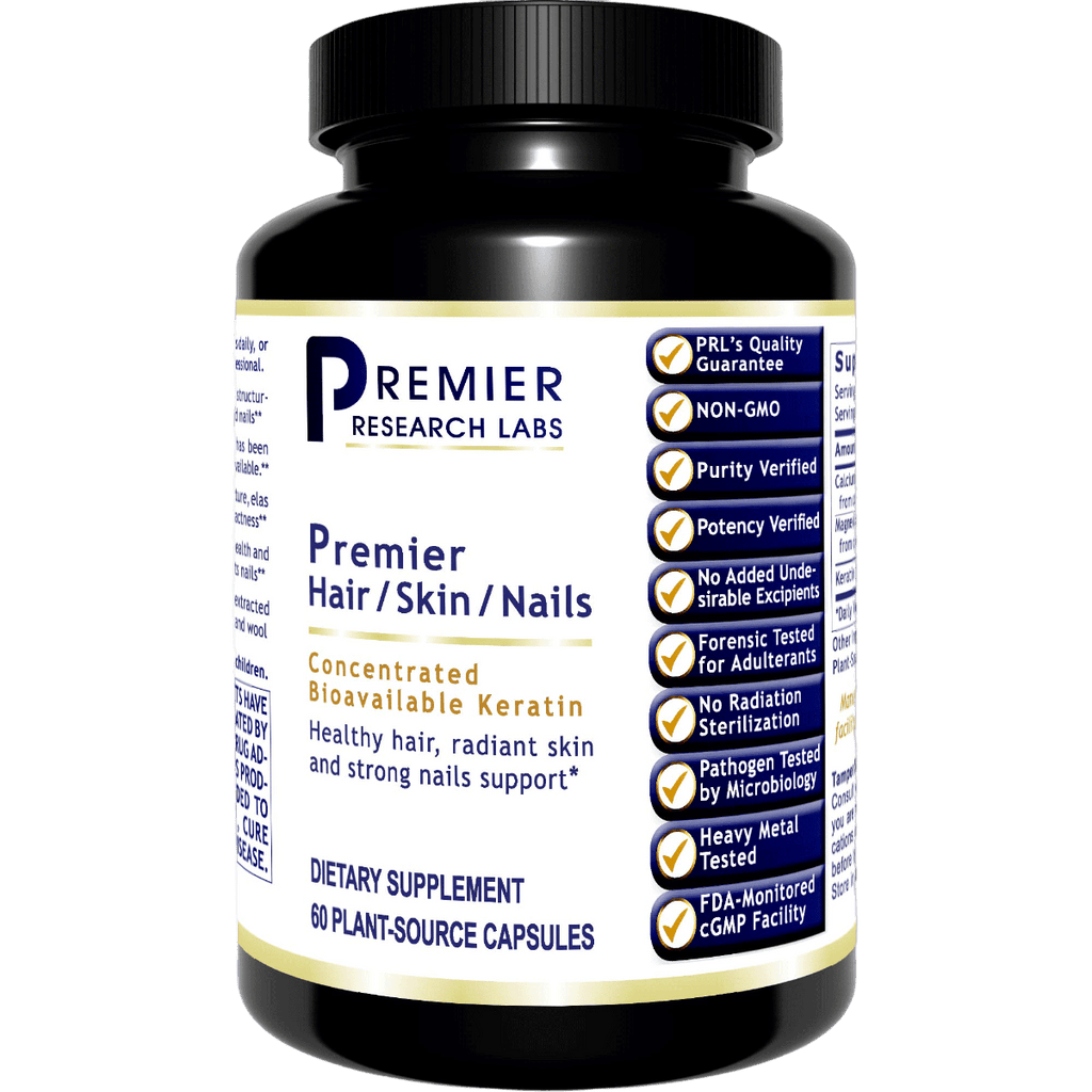 Premier Hair/Skin /Nails™ features a unique, solubilized keratin made with the use of a revolutionary patented process. This product offers a more bioavailable keratin which aids in clinically supporting and promoting the health and integrity of skin, hair and nails.