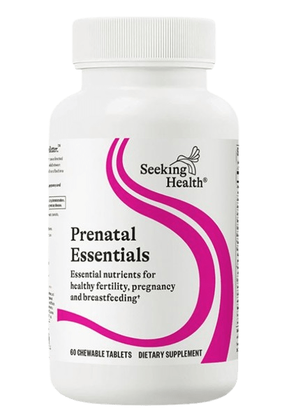 Dr. Lynch created this formula after years of research into epigenetics, fertility, and pregnancy, including the MTHFR gene variation. It is designed for women who require a lower-strength formula (compared to Seeking Health's high-strength Optimal Prenatal). Compared to our Prenatal Essentials capsules, this chewable version contains CoQ10 and milk thistle for additional detoxification and antioxidant support.