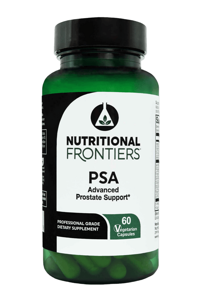 PSA contains a combination of nutrients and herbs to promote proper function of the prostate gland. The prostate is a walnut-sized gland that plays a role in male reproduction. Many men over age 50 have some prostate enlargement, called BPH – benign prostatic hyperplasia. The enlarged gland causes obstructive symptoms like urinary frequency, urgency, and even sometimes urinary incontinence. The Nutritional Frontiers’ supplement PSA was designed to be helpful for balancing hormones, managing DHT levels, and positively affecting the enzymes that support healthy prostate size and function.