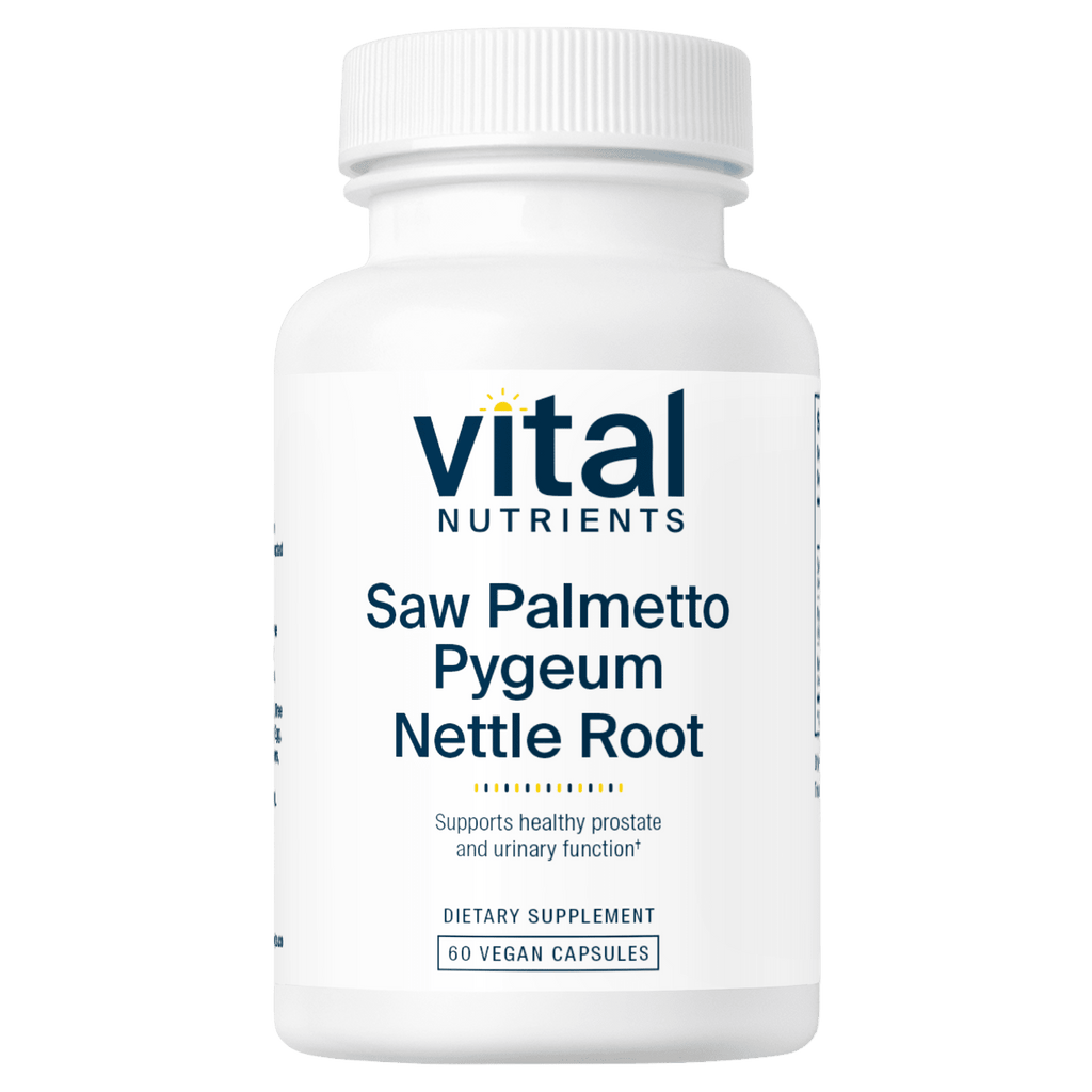 Volatile oils and fatty acids contained in Saw Palmetto act as a urinary tonic, and may promote inflammatory balance. Pygeum bark is an herb that has been traditionally used to support men’s urinary health, helping to maintain normal frequency, flow and volume. Nettle Root, a source of plant phytosterols, helps to maintain healthy hormone metabolism in the prostate and assists in healthy urinary volume.