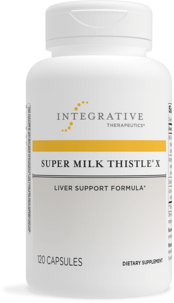 Milk thistle (Silybum marianum) extract with other supportive herbs for healthy liver support. Super Milk Thistle X combines artichoke extract, dandelion leaf extract, and licorice root extract with a milk thistle fruit extract, standardized to contain 55% silymarin. The ingredients in Super Milk Thistle X provide support for healthy liver function.