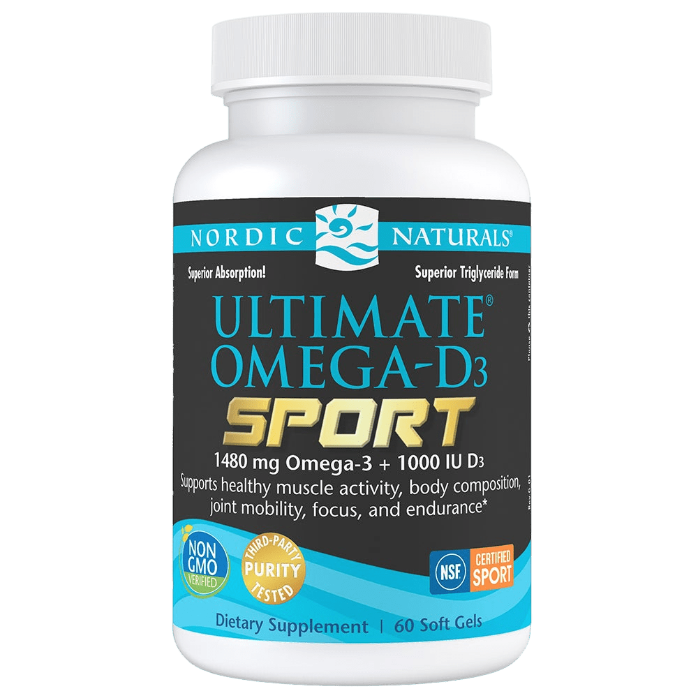 Ultimate Omega-D3 Sport adds 25 mcg (1000 IU) vitamin D3 to Noridc Natural's high-potency EPA-rich fish oil—two key nutrients for athletes. This 2:1 EPA to DHA omega-3 blend provides additional immune support, helping cells appropriately respond to stress while promoting cardiovascular health, joint mobility, and focus.
