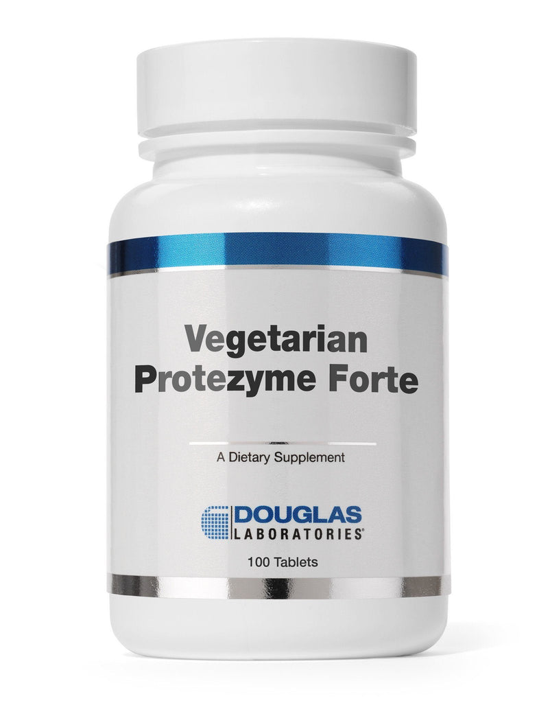Vegetarian Protezyme Forte, provided by Douglas Laboratories®, is a synergistic blend of several proteolytic enzymes designed to support the bodyÕs normal joint function and healing processes.* The enzymes present in Vegetarian Protezyme Forte are derived from non-animal sources, making this product suitable for vegetarians and those individuals wishing to avoid animal-derived enzymes.