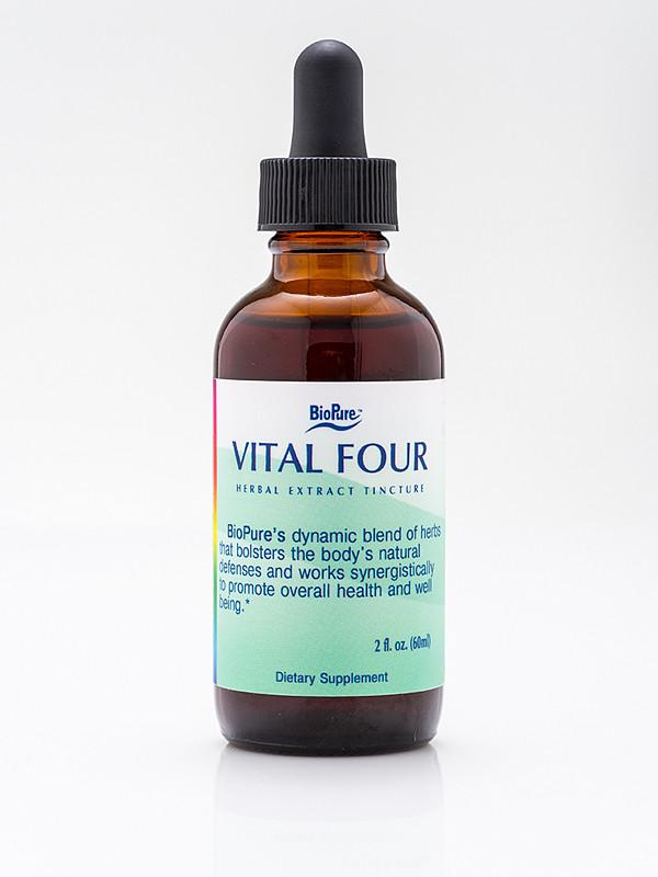 A synergistic blend of Echinacea, Goldenseal, Myrrh, and Oregon Grape Root. Vital Four narrows BioPure’s Viressence tincture down to four ingredients, chosen to support the immune system and normal blood sugar metabolism.