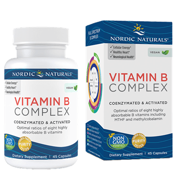 Delivering physiologically meaningful doses of eight highly absorbable and water-soluble B vitamins, Nordic Naturals Vitamin B Complex supports daily cellular operations and helps optimize important metabolic activities throughout the body. In order to take part in chemical reactions and support enzymes responsible for essential bodily functions, B vitamins must exist in coenzymatic forms. This B complex provides B vitamins in biologically accessible coenzyme forms—including 5-MTHF, methylcobalamin, P5’P, and R5’P—for greater absorption and usability to help meet the daily cellular maintenance needs of a diverse range of individuals.